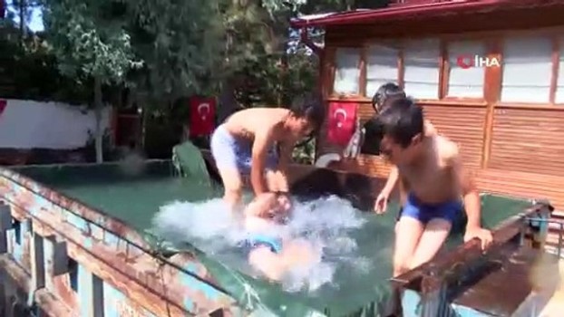 Kuzenlerinin ve kardeşinin römorka doldurulan su ile doyasıya eğlendiğini belirten Muhammet Ali Pek, “ Hava sıcaktı, bizim çocuklarda bunalmıştı. Ferahlamaları gerekiyordu, bizde böyle bir şey düşündük. Ardından römorka brandayla kaplayıp, su doldurduk. Gördüğünüz gibi şuanda eğleniyorlar“ dedi.