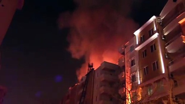 - İtfaiye ekiplerinin binanın çatı katında çıkan yangına müdahale etmesi - Ekiplerin vatandaşları bölgeden uzaklaştırmaya çalışması - Bir görgü tanığının konuşması Bursa 'da çatı yangını - Osmangazi ilçesinde bir binanın çatı katında çıkan yangına itfaiye ekipleri müdahale ediyorBURSA (AA) - Bursa 'nın Osmangazi ilçesinde, bir binanın çatı katında yangın çıktı.Dikkaldırım Mahallesi Derince Sokak'taki 7 katlı bir binanın çatı katında, henüz belirlenemeyen nedenle yangın çıktı.Olay yerine çok sayıda itfaiye, polis ve sağlık ekibi sevk edildi.İtfaiye ekiplerinin müdahale ettiği yangın, kontrol altına alınmaya çalışılıyor.Bu arada, bina sakinleri ekipler tarafından tahliye edildi, çevrede güvenlik önlemleri alındı. Görgü TanığıÇatı KatıSağlık EkibiÇatı YangınıYangına Müdahale