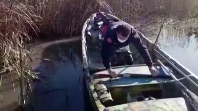 - Ekiplerin kayıkta yaptığı incelemeler - Ele geçirilen çeşitli av malzemelerinin görüntüsü Bursa 'da gölde mahsur kalan kaçak avcıları jandarma kurtardı - Kaçak avlanan 2 kişiye beşer bin lira ceza kesildiBURSA (AA) - Bursa 'da kaçak avlanmaları nedeniyle jandarmadan kaçarken Uluabat Gölü'nde mahsur kalan iki kişi kurtarıldı.Nilüfer Jandarma Asayiş Bot Komutanlığı ekipleri, Uluabat Gölü'nde kıyı seyir ve kontrol görevi yaparken Arıburnu mevkisinden silah sesi geldiğini duydu. Bunun üzerine söz konusu bölgeye yönelen ekipler, sazlık alanda iki kayık ve kamışlarla gizlenmiş güme (avcı kulübesi) tespit etti ancak kimseye rastlamadı. Ekipler, kayıkta yaptıkları incelemede 4 tüfek, 116 fişek, 6 canlı ve bir telef olmuş ördek ile çeşitli av malzemeleri ele geçirdi. Daha sonra jandarmayı arayan K.C. (39) ve I.Ş. (37), ekipleri görünce başka bir kayıkla göle açıldıklarını ancak akıntının etkisiyle suda mahsur kaldıklarını bildirdi. K.C. ve I.Ş'nin bulunduğu konuma yönelen ekipler, avcıları kurtararak kıyıla çıkardı. Haber verilen Doğa Koruma ve Milli Parklar Şube Müdürlüğü yetkilileri, K.C. ve I.Ş'ye kaçak avlanmaktan beşer bin lira ceza uyguladı. Mahsur KaldıJandarmaKaçakKaçak AvcıTrol