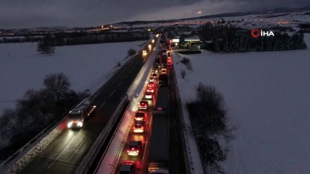 - Dün sabaha karşı başlayan ve gün boyu etkisini sürdüren kar yağışı Bursa-Balıkesir-İzmir yolunu trafiğe kapattı. Bursa’dan İzmir istikameti 17 saattin ardından kontrollü şekilde açıldı. Balıkesir Susurluk’ta 17 saatlik kar esareti devam ediyor. Dün sabaha karşı başlayan ve gün boyu etkisini sürdüren kar yağışı Bursa -Balıkesir - İzmir yolunu vurdu. Yoğun tipi ile kapanan yollarda karayolları ve belediye ekipleri gün boyu kar küreme araçları ile çalışmalarını sürdürdü. Geçtiğimiz saatlerde Susurluk ile Bursa arasını kontrollü olarak trafiğe açan ekipler, ilerleyen saatlerde Bursa’dan Balıkesir istikametini de kontrollü olarak trafiğe açtı. Bursa’dan Balıkesir’e giden sürücüler adım adım yolculuklarını sürdürüyor. Uzun bekleyişlerine devam eden sürücüler ise yolun bir an önce normale dönmesini bekliyor. (SD-