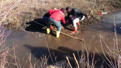 - Ağrı’da derelerin donmaya başlaması ile birlikte balıkçılık yaparak geçimini sağlayan vatandaşlar ağlarını alarak buzlu sularda balık avlamaya başladılar. Ağrı’da kış mevsiminde balıkçılık yaparak geçimini sağlayan vatandaşlar bu seneki ilk mesailerine başladılar. Ağrı merkeze bağlı Yukarı Küpkıran Köyü’nde yaşayan balıkçılar ağlarını alarak buzlu sularda balık avına çıktılar. Donmaya başlayan derede oluşan buzları kırarak balık avlayan vatandaşlar ardından yaktıkları ateşte demledikleri çayı içerek ısınmaya çalıştılar. ‘Arkadaşlarımızla birlikte balık avlamaya çıktık’ Havalar güzel olsa da derelerin bir kısmının donmaya başladığını kaydeden Erkan Aşantuğrul, derelerin donmaya başladığı yerlerdeki buzları kırarak balık avladıklarını söyledi.