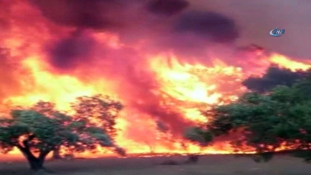 - Çanakkale'nin Ezine ilçesi Geyikli bölgesinde çıkan yangını rüzgarın etkisiyle büyüyor. Dalyan Köyü civarında saat 17.45 sıralarında zirai alanda yangın çıtı. Rüzgarın da etkisiyle kısa sürede büyüyen ve ormanlık alana sıçrayan yangına Orman Bölge Müdürlüğü'ne bağlı 1 amfibik uçak, 5 helikopter, 24 arazöz ve 3 dozer ile yangına müdahale ediyor. Rüzgarın etkisini hissettirmesi ekiplerin işini güçleştiriyor.