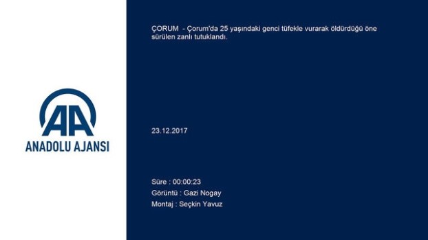 - Çorum Adliyesi binasından detay görüntü - Zanlının adliyeye sevk edilmesi - 25 yaşındaki genci tüfekle vurarak öldürdüğü iddia edilen şüpheli tutuklandıÇORUM (AA) - Çorum 'da 25 yaşındaki genci tüfekle vurarak öldürdüğü öne sürülen zanlı tutuklandı.Emlakçıda çalışan Sezgin Süzer'in (25) pompalı tüfekle vurularak öldürülmesiyle ilgili yürütülen soruşturma kapsamında gözaltına alınan Özgür T'nin (37) emniyetteki işlemleri tamamlandı.Sağlık kontrolünün ardından adliyeye sevk edilen zanlı, çıkarıldığı mahkemece tutuklandı.Bahçelievler Mahallesi'ndeki bir emlakçıda çalışan Sezgin Süzer, dün akşam, iddiaya göre iş yeri sahibi Özgür T. ile sohbet ederken dükkanda bulunan pompalı tüfekle oynamaya başlamış, Özgür T'nin tüfeği almak istediği sırada ateş alması sonucu başından vurulan Süzer, hayatını kaybetmişti. Pompalı TüfekTrol