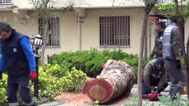 - Manisa’da çürüyen 250 yıllık bir çınar ağacı gövdesinden ikiye ayrılarak muhtarlık binası ve park halindeki bir otomobile zarar verdi. Olayda şans eseri yaralanan olmadı.Manisa’nın Yunusemre ilçesi Tevfikiye Mahallesindeki muhtarlık binasının arkasında bulunan 25 metre uzunluğundaki 250 yıllık çınar ağacı çürüme nedeniyle gövdesinden ikiye ayrıldı. Muhtarlık binasına ve park halindeki bir otomobile zarar veren ağaç Manisa Büyükşehir Belediyesi ve Yunusemre Belediyesi ekipleri tarafından küçük parçalara ayrılarak kaldırıldı.Olay sırasında muhtarlık binasında olmadığını kaydeden Tevfikiye Mahallesi Muhtarı Afiz Çiçek, “Saat 13.30’da yemekteyken buradaki esnaf arkadaşlarımız ağacın büyük bir dalının koptuğunu haber verdi. İlgili kurumları aradık. Büyükşehir ve Yunusemre belediyesi hemen müdahalede bulundu. Burada bir araç dalın altında kalarak hasar gördü. Bereket cana bir zarar geldi. Olay esnasında bir çocuk varmış şükür ona da bir zarar gelmemiş. Tek sevincimiz bu. Ağacın tam gövde yerinde ayrılma yerinde çürüme olduğu görülüyor. Öyle ciddi bir fırtına da yok. 250 yıllık diyebiliriz ağaç için. Bizim çocukluğumuzdan beri bu ağaç aynı büyüklükte” dedi.