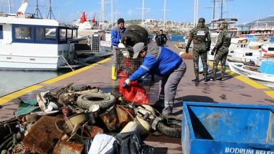 - “Denize En Çok Mavi Yakışır” Deniz Dibi Temizlik Çalışmaları kapsamında Sevgililer Günü’nde dalış yapan Bodrum Belediyesi Dalış Ekibi, sualtında Başkan Mehmet Kocadon imzalı “Vatanımız Canımız Mehmetçik Sevdamız” yazılı pankart açtı. Bu yıl dördüncü kez düzenlenen Bodrum Belediyesi’nin “Denize en çok MAVİ yakışır” sloganıyla geleneksel olarak gerçekleştirdiği deniz dibi temizlik çalışmaları Gümbet’te devam etti. 14 Şubat 2018 Çarşamba günü Gümbet iskelesinde gerçekleşen çalışmalarda Bodrum Belediyesi Dalış Ekibinde görevli dalgıçlar, iskelenin etrafını baştan sona dolaşarak deniz dibini atıklardan arındırdı. Yaklaşık 1,5 saat süren deniz dibi temizliği sırasında denizden çıkarılan alışveriş arabası, meyve sıkacağı ve araç lastikleri görenleri şaşırttı. Denizden metal 133, plastik 47, cam 180, teneke kutu 19, lastik 159, tekstil 64, elektronik 3 ve diğer kapsamda değerlendirilen 10 kg atık olmak üzere toplam 615 kg atık çıkarıldı. Çalışmalar ve günün önemi hakkında değerlendirmede bulunan dalgıçlardan Öner Karaçiçek “Bodrum Belediye Başkanımız Mehmet Kocadon’un imzasıyla sualtında pankart açtık ve bunu da Afrin’de görev yapan Mehmetçiklerimize adadık. Onlara kolaylıklar diliyoruz. Allah yardımcıları olsun. Şehit vermeden inşallah bu operasyon tamamlanır, biter. Şehit olan askerlerimizin mekanı cennet olsun, Allah rahmet eylesin. Sevdiklerine, ailelerine sabırlar diliyoruz” dedi.