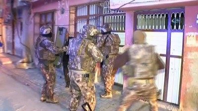 ( ADANA ) DEAŞ'a "1 Mayıs operasyonu"- Adana'da "1 Mayıs Emek ve Dayanışma" gününde eylem arayışında oldukları ileri sürülen 6'sı Suriyeli 4'ü Türk 10 DEAŞ üyesi gözaltına alındı- Zanlılardan birinin evine özel harekat polisleri girerken, evin duvarında Arapça "Allah kafiri sevmez" yazdığı görüldü- Aynı DEAŞ'lının evinin dört bir tarafının da güvenli kamerası ile korunduğu tespit edildi ADANA