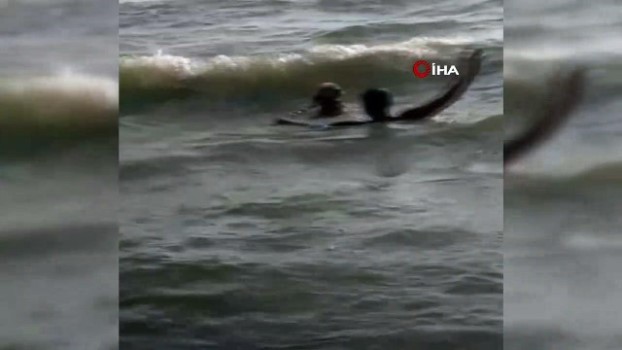 Denize giren kişinin boğulduğunu sanan köpeğin kurtarma çalışması kamerada