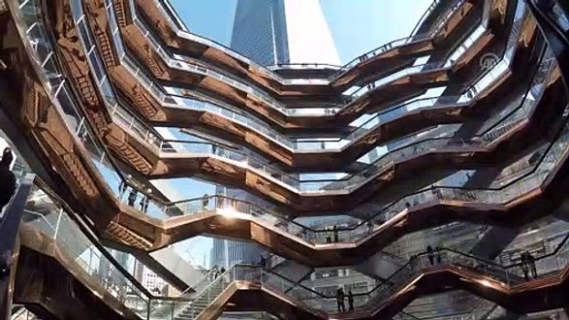 Devasa yapı "The Vessel" açıldı - NEW YORK - "The Vessel" adlı yapıdan detaylar - Yapıyı ziyaret edenlerden görüntülerNEW YORK (AA) - İngiliz tasarımcı Heatherwick tarafından tasarlanan, bal peteği formunda, birbiriyle bağlantılı bir dizi merdivenden oluşan devasa yapı "The Vessel" açıldı. İngiliz tasarımcı Thomas Heatherwick tarafından tasarlanan, Manhattan’ın "The Vessel", Batı Yakası’ndaki Hudson Yards bölgesi için bal peteği formunda, birbiriyle bağlantılı bir dizi merdivenden oluşuyor. Toplam 154 merdiven, 2.500 basamak ve 80 bağlantı noktasına sahip ve ziyaretçilerin tırmanabildiği yapı bölgenin ortasına inşa edildi, BildGesiZiyaretçiler