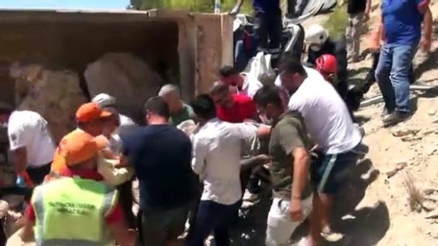 - Kaza yerinden görüntü - Kamyonda sıkışan sürücünün kurtarılması - Sürücünün sedye ile ambulansa taşınması - Devrilen kamyondan ve kamyondan etrafa saçılan taşlar Antalya 'da devrilen hafriyat kamyonunda sıkışan sürücü itfaiye ekiplerince kurtarıldıANTALYA (AA) - Antalya 'nın Manavgat ilçesinde devrilen hafriyat kamyonunda sıkışan sürücü ağır yaralandı.Musa Güven yönetimindeki taş ocağına ait 07 LDH 23 plakalı kamyon, Gençler Mahallesi D - 695 kara yolunda virajı alamayarak devrildi.Sürücü, araçta sıkışarak ağır yaralandı.Çevredekilerin haber vermesi üzerine kaza yerine jandarma, polis, itfaiye ve sağlık ekipleri sevk edildi.İtfaiye ekiplerince sıkıştığı yerden çıkarılan kamyon şoförü, çevredekilerin de yardımıyla sedyeye konularak ambulansa taşındı.Güven, sağlık ekibinin müdahalesinin ardından Manavgat Devlet Hastanesine kaldırıldı. Sağlık EkibiHafriyat KamyonuTaş OcağıSağlık EkipleriKamyon Şoförü