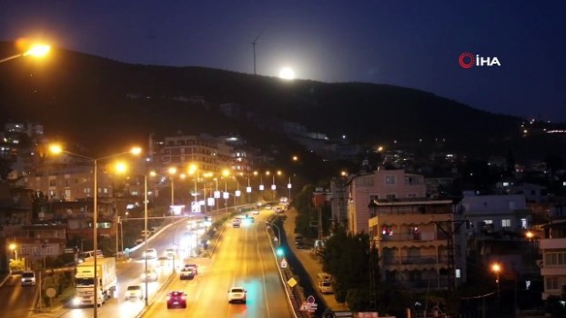 Dolunay ve çilek Ayı tutulması Hatayda Türkiyenin simgeleri ile görüntülendi