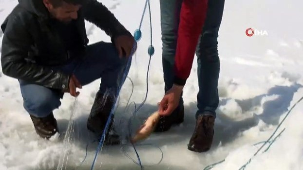 Ayaz, “Biz sabah erkenden buz tutan gölün üzerinde yürüyerek 3-4 kilometre yol kat ediyoruz. Gölün ortasına gelip önceden attığımız ağlarımızı çıkarıyoruz. Ağlarımızı çıkarırken günün büyük bir bölümünü göl üzerinde geçiriyoruz. Ağları çektiğimiz gözeneklerden çıkan buz gibi suyla abdest alıyoruz ve öğle ile ikindi namazlarımız da göl üzerine serdiğimiz montlarımızın üzerinde kılıyoruz” dedi.