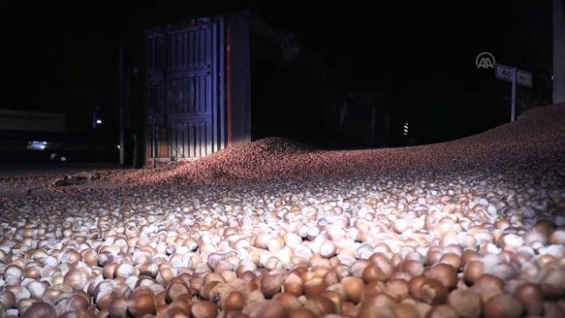 DÜZCE - Tırın devrilmesi sonucu D-100 karayolu fındıkla kaplandı