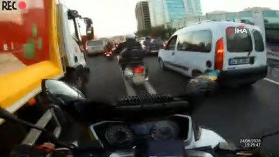 E-5 Karayolu’nda motosikletliye çarpıp kaçan sürücü trafikte terör estirdi... O anlar kamerada