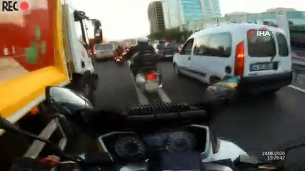 - E-5 Karayolu Cevizlibağ mevkisinde hafif ticari aracın sürücüsü, seyir halinde olan bir motosikletlinin üzerine sürdü. Trafik sıkışınca inen motosikletli, yanına gittiği esnada ise araç sürücüsü geri manevra yaparak başka bir motosikletliye çarparak yere düşürdü. Tartışma çıkması üzerine ise araç sürücüsü kaçınca trafikte kovalamaca yaşandı. Motosikletlilerin üstüne sürerek terör estiren sürücü, bir süre sonra başını aracın içerisine sokarak kendisiyle kavga eden motosikletliyi birkaç metre sürükledi. Yaşananlar ise kask kamerasına yansıdı. Olay, dün saat 19.30 sıralarında E-5 Karayolu Cevizlibağ mevkisi Edirne istikametinde meydana geldi. İddiaya bilgiye göre akşam saatlerinde iş çıkışı trafikte seyir halinde olan 34 KS 8864 plakalı aracın sürücüsü, karayolunda giden motosikletlinin üzerine sürdü. Bunun üzerine duruma sinirlenen motosikletli, trafik sıkışınca inerek araç sürücüsünün yanına gitti. O esnada anlamsız bir şekilde geri manevra yapan araç sürücüsü, arkasında duran motosikletli kuryeyi çarparak yere düşürdü. Tansiyonun yükselmesi üzerine arkadan gelen motosiklet sürücüsü inerek sürücüyle tartışmaya başladı.