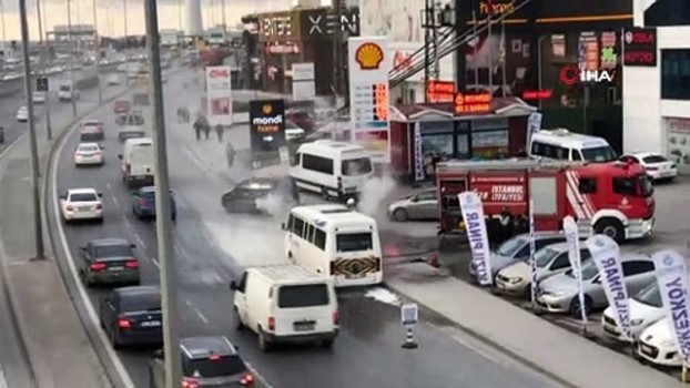 E-5'te servis minibüsü yandı