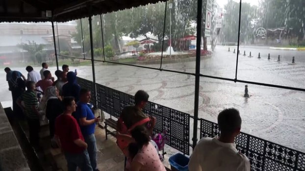 - Edirne 'de etkili olan sağanak yağıştan görüntülerEDİRNE (AA) - yaşamı olumsuz etkiledi.Kentte aniden etkili olan yağmura hazırlıksız yakalanan vatandaşlar zor anlar yaşadı. Sağanak nedeniyle bazı cadde ve sokaklarda su birikintileri oluşurken, trafik ekipleri sürücüleri dikkatli olmaları yönünde uyardı.Vatandaşların şemsiye ve poşetlerle yağmurdan korunmaya çalıştığı gözlendi. Bazı vatandaşlar ise iş yerlerinin tenteleri altına ve tarihi Eski Cami'nin avlusuna sığındı.Meteoroloji yetkililerinden alınan bilgiye göre, hava sıcaklığının 25 derece ölçüldüğü kentte sağanağın hafta sonuna kadar aralıklarla etkili olması bekleniyor. Hava SıcaklığıHafta SonuSağanak YağışAkalan