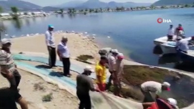 Eğirdir Gölü'nde ağlar bi defe gölü kirleten çöpler için atıldı