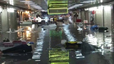 - Meteorolojinin uyarılarının ardından başlayan yağış nedeniyle Eminönü’nde bulunan alt geçitteki çarşıyı su bastı. Bel boyuna kadar çıkan sel suları nedeniyle iş yerlerindeki malzemeler suda yüzdü. Meteoroloji Genel Müdürlüğü'nden yapılan uyarıların ardından İstanbul’da başlayan yağış hayatı olumsuz etkiledi. Yağış nedeniyle birçok ev ve iş yerini su basarken, bazı caddelerde su birikintileri oluştu. Öğle saatlerinden sonra aniden bastıran yağış nedeniyle Eminönü’nde alt geçitte bulunan çarşıyı su bastı. Çarşı içerisinde bulunan vatandaşlar suların dolmaya başlamasıyla birlikte alt geçidi boşaltırken, esnaflar ise kepenk kapattı. Yaklaşık bel boyuna kadar çıkan yağmur suları nedeniyle iş yerleri sular altında kalırken, malzemeler ise suda yüzdü. Bazı çarşı çalışanları ise elbiseleriyle birlikte suya girerek ürünleri kurtarmaya çalıştı. Öte yandan ekipler ise suyun boşaltılması için çalışma başlattı.