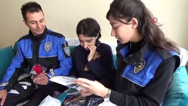 ( KAHRAMANMARAŞ ) - Kahramanmaraş’ta zihinsel engelli Merve Aslan’ın polise olan sevgisini duyan Emniyet Müdürlüğü ekipleri genç kıza sürpriz yaptı KAHRAMANMARAŞ