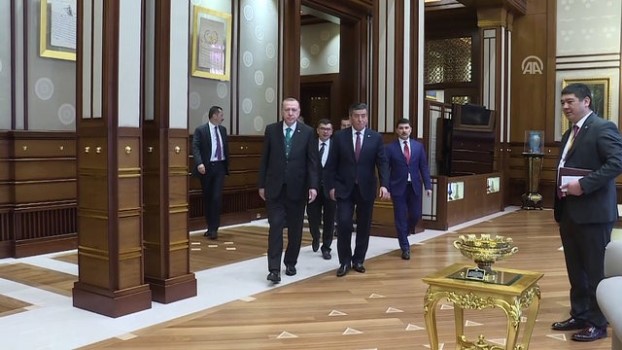 - Cumhurbaşkanı Recep Tayyip Erdoğan ve Kırgızistan Cumhurbaşkanı Sooranbay Ceenbekov'un tokalaşması ve görüşmeden görüntülerKırgızistan Cumhurbaşkanı Ceenbekov Ankara 'da - Cumhurbaşkanı Erdoğan, Kırgızistan Cumhurbaşkanı Ceenbekov'u resmi törenle karşıladıANKARA (AA) - Resmi ziyaret için Türkiye'ye gelen Kırgızistan Cumhurbaşkanı Sooranbay Ceenbekov, Cumhurbaşkanı Recep Tayyip Erdoğan tarafından resmi törenle karşılandı.Erdoğan, Kırgızistan Cumhurbaşkanı Ceenbekov'u, Cumhurbaşkanlığı Külliyesi'nin ana giriş kapısında karşıladı. İki liderin tören alanındaki yerlerini almalarının ardından, 21 pare top atışı eşliğinde iki ülkenin milli marşları çalındı.Konuk Devlet Başkanı Ceenbekov, Muhafız Alayı Tören Kıtası'nı Türkçe, "Merhaba asker" diyerek selamladı. Törende tarihte kurulan 16 Türk devletini temsil eden bayraklar ve askerler de yer aldı.Heyetlerin takdiminin ardından Erdoğan ve Ceenbekov, merdivenlerde ülkelerinin bayrakları önünde poz verdi.Törende, Başbakan Yardımcısı Hakan Çavuşoğlu, Dışişleri Bakanı Mevlüt Çavuşoğlu, Ekonomi Bakanı Nihat Zeybekci, Gıda, Tarım ve Hayvancılık Bakanı Ahmet Eşref Fakıbaba, Cumhurbaşkanlığı Genel Sekreteri Fahri Kasırga, Türkiye Maarif Vakfı Başkanı Prof. Dr. Birol Akgün, Ankara Valisi Ercan Topaca yer aldı.Baş başa görüşecek olan iki lider, heyetler arası görüşmelerin ardından, iki ülke arasındaki anlaşmaların imza törenine katılacak, ortak basın toplantısı düzenleyecek.Cumhurbaşkanı Erdoğan ve Kırgızistan Cumhurbaşkanı Ceenbekov, Cumhurbaşkanlığı Külliyesi'nde resmi akşam yemeğine katılacak. Resmi TörenBasın ToplantısıToplantıBeko