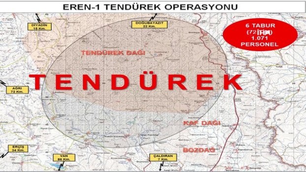 Bakanlıktan yapılan açıklamada, bu kapsamda ilki Tendürek bölgesinde başlatılan “EREN-1 TENDÜREK Operasyonu'nda; Jandarma Komando, Jandarma Özel Harekat (JÖH), Polis Özel Harekat (PÖH) ve Güvenlik Korucu timlerinden oluşan bin 71 personel 72 operasyonel timin görev aldığı bildirildi.