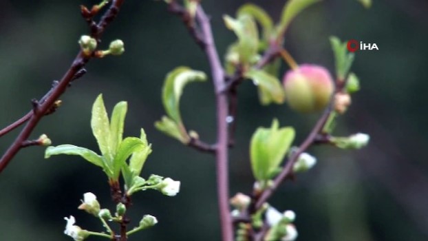 Erik ağacı kışın ortasında çiçek açtı