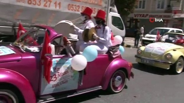 ( İSTANBUL )- 23 Nisan coşkusu klasik otomobillerdeki bando ekipleriyle yaşandı İSTANBUL