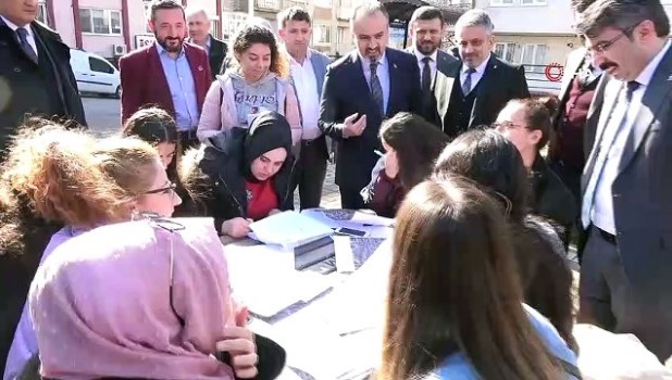 - Bursa’da her gittiği mahalle ve sokakta vatandaşlar tarafından büyük ilgiyle karşılanan Büyükşehir Belediye Başkanı Alinur Aktaş, hayırlı işler dilemek için girdiği ayakkabıcı dükkanında konser sürprizi ile karşılaştı. Bir taraftan kenti geleceğe taşıyacak projeleri bir bir hayata geçiren Bursa Büyükşehir Belediye Başkanı Alinur Aktaş, diğer taraftan da seçim çalışmaları kapsamında kapı kapı gezip, seçim sonrası yapacakları projeleri vatandaşlara anlatıyor. Yıldırım ilçesindeki Kurtuluş Caddesi’nde de tek tek esnafları gezen Aktaş, girdiği ayakkabıcı dükkanında beklemediği bir sürprizle karşılaştı. İki yıl ulusal bir televizyon kanalının ses yarışmasına da katılan Oğuz Özkan, dükkanına giren Alinur Aktaş’ı elinde udu ile ağırladı. Ud çalıp, Başkan Aktaş’a mini bir de konser veren Özkan, seçimlerde başarılar diledi. Esnaf gezisinin ardından beraberindeki AK Parti İl Başkanı Ayhan Salman ve AK Parti Yıldırım Belediye Başkan Adayı Oktay Yılmaz ile birlikte MHP Yıldırım ilçe Başkanlığı’nı ziyaret eden Başkan Aktaş, burada da birlik ve beraberlik mesajları verdi. Cumhur ittifakının milli ve manevi değerler kaygısı üzerine kurulduğunu da dile getiren Aktaş, “Tek derdi vatan, millet, bayrak, devlet olanlar bir araya gelip, Cumhur ittifakıyla seçime gidiyoruz. Bunun sadece bir yerel seçim değil, ülkenin beka meselesi olduğunu mutlaka kapı kapı gezip herkese anlatmalıyız. Bursa’yı daha güzel yarınlarda hazırlamaktan başka bir amacımız yok” dedi.