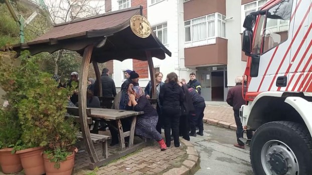 - Binada mahsur kalan vatandaşların itfaiye aracı ile indirilişi - İtfaiye ekiplerinin çalışmaları, - Dumandan etkilenen vatandaşların ambulanslara alınışı - İki kedisiyle birlikte itfaiye tarafından binadan kurtarılan kadının görüntüsü - Genel görüntüler - İzmit ilçesinde bir apartmanda çıkan ve itfaiye ekiplerince söndürülen yangında, dumandan etkilenen 5'i çocuk 12 kişi hastanede tedavi altına alındıKOCAELİ (AA) - Kocaeli 'nin İzmit ilçesinde bir apartmanın 3. katında çıkan ve itfaiye ekiplerince söndürülen yangında, dumandan etkilenen 5’i çocuk 12 kişi hastaneye kaldırıldı.Alınan bilgiye göre, Kuruçeşme Yenimahalle Radar Yolu Caddesi Çimenli Sokak'taki sitedeki bir apartmanda, Jale Şen'e ait 3. kattaki dairede henüz belirlenemeyen nedenle yangın çıktı.Daireden yükselen dumanları gören çevredeki vatandaşların durumu bildirmesi üzerine, olay yerine itfaiye, polis ve sağlık ekipleri sevk edildi.İtfaiye ekipleri yangını kısa sürede söndürdü.Yoğun duman nedeniyle diğer dairelerdeki bina sakinleri apartmanda mahsur kaldı. İtfaiye ekipleri binada mahsur kalan vatandaşları merdivenli aracın sepetine alarak kurtardı.Binanın en üst katındaki dairede ikamet eden bir kadın ise evde beslediği iki kedisini de kucağına alarak, itfaiyenin sepeti ile aşağıya indi.Yangında dumandan etkilenen 5’i çocuk 12 kişi, ambulanslarla çevredeki hastanelere kaldırıldı.Elektrik kontağından çıktığı şüphesi üzerinde durulan yangında daire kullanılamaz hale geldi. Mahsur KaldıHastaneİtfaiye AracıSağlık EkipleriYükselen