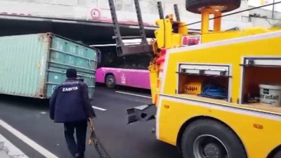 - Kaza yerinden detay görüntü İSTANBUL - Florya'da köprüye çarpan ve dorsesi devrilen tır, yolun kısmen kapanmasına neden oldu. Büyükşehir Belediyesi ekiplerinin yolu açmak için yürüttüğü çalışmalar devam ediyor.