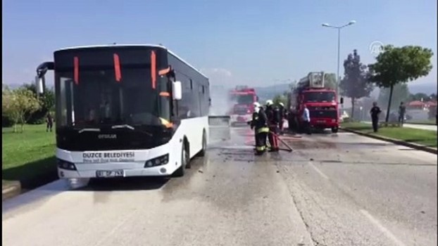 - Olay yerinden görüntüleDÜZCE (AA) - Düzce 'de seyir halindeyken motor bölümünde yangın çıkan otobüste hasar oluştu.Alınan bilgiye göre, Kalıcı Konutlar - Şehir Merkezi seferini yapan Dursun Usoğlu yönetimindeki 81 DP 753 plakalı Düzce Belediyesine ait denetimli özel halk otobüsünün motor bölümünde, henüz belirlenemeyen nedenle yangın çıktı.Yangını fark ederek otobüsü durduran sürücü, yolcuları tahliye ederek kendi imkanlarıyla yangına müdahale etti.Haber verilmesi üzerine olay yerine gelen itfaiye ekipleri, yaklaşık yarım saatlik çalışma sonucu yangını kontrol altına aldı. Yangın otobüste hasara yol açtı.Yangın nedeniyle Kalıcı Konutlar - Şehir Merkezi güzergahında aksayan trafik akışı ekiplerin çalışmasının ardından normale döndü.Yolcular, başka bir otobüsle şehir merkezine götürüldü. GüzergahHalk OtobüsüYangına MüdahaleTrol