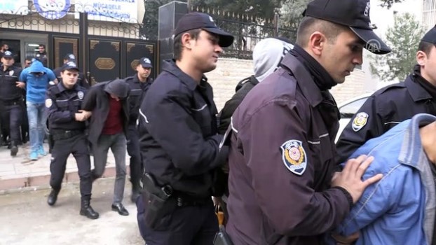 - - Zanlıların emniyetten çıkarılması - Zanlıların otobüslere bindirilmesi - Hatay ve Ankara'da organize suç örgütüne yönelik düzenlenen operasyonda gözaltına alınan 20 zanlıdan 10'u tutuklandıHATAY (AA) - Hatay ve Ankara'da organize suç örgütüne yönelik düzenlenen operasyonda gözaltına alınan 20 zanlıdan 10'u tutuklandı. Hatay Cumhuriyet Başsavcılığı koordinesinde, İl Emniyet Müdürlüğü Kaçakçılık ve Organize Suçlarla Mücadele Şubesi ekiplerince, suç örgütüne yönelik 27 Aralık'ta 2 kentte eş zamanlı düzenlenen operasyonda gözaltına 20 şüphelinin Emniyet Müdürlüğündeki işlemleri tamamlandı."Nitelikli yağma, kişiyi hürriyetinden yoksun kılma, kasten yaralama, küçük yaşta erkek çocuğuna cinsel saldırı, cinsel saldırıya teşebbüs, konut dokunulmazlığını ihlal etme, ikametten hırsızlık, gümrük kaçakçılığı, yağmaya teşebbüs, kesici aletle kasten yaralama, mala zarar verme, tehdit ve hakaret" suçlarından adliyeye sevk edilen zanlılardan 10'u tutuklanırken, 2'si kadın 10 kişi de adli kontrol şartıyla serbest bırakıldı.Operasyonda zanlıların ev, iş yeri ve otomobillerinde yapılan aramalarda, 2 tabanca, 3 şarjör, 30 mermi, 2 pompalı tüfek, 8 av tüfeği fişeği, bir kuru sıkı tabanca ve 44 fişek, 1 çelik yelek ve 13 cep telefonu ele geçirilmişti. Adli KontrolSuç ÖrgütüCep TelefonuPompalı TüfekÇelik Yelek