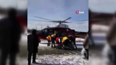 Hava ambulansı karla kaplanan yola inip hasta nakli gerçekleştirdi