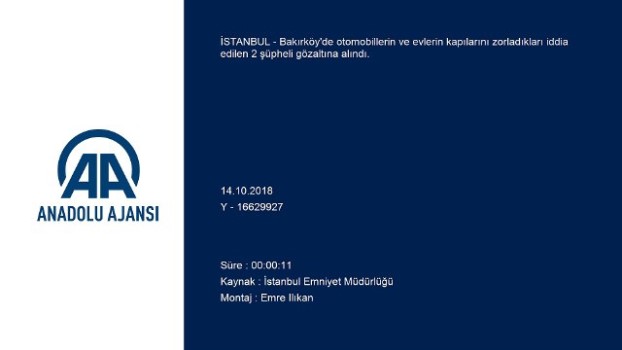 - Yakalanan şüpheliler Hırsızlık şüphelileri yakalandıİSTANBUL (AA) - Bakırköy'de otomobillerin ve evlerin kapılarını zorladıkları iddia edilen 2 şüpheli gözaltına alındı.Önleyici Hizmetler Şube Müdürlüğüne bağlı motosikletli polis timleri, 12 Ekim'de Bakırköy'de sabah saatlerinde 2 şüphelinin otomobillerin ve evlerin kapılarını zorladığı ihbarı üzerine çalışma başlattı.Çevredeki cadde ve sokakları kontrol eden ekipler, 2 şüpheliden birini evin kapısını, diğerini de sokaktaki bir aracın kapısını zorlarken yakaladı.Gözaltına alınan S.G (22) ve yaşı küçük E.G'nin üst aramasında 2 tornavida, kurbağacık olarak tabir edilen anahtar, alyan, ve şeffaf poşet ele geçirildi.Şüphelilerin emniyetteki işlemleri sürüyor. KırköyPolisAkalanKurbağaTrol