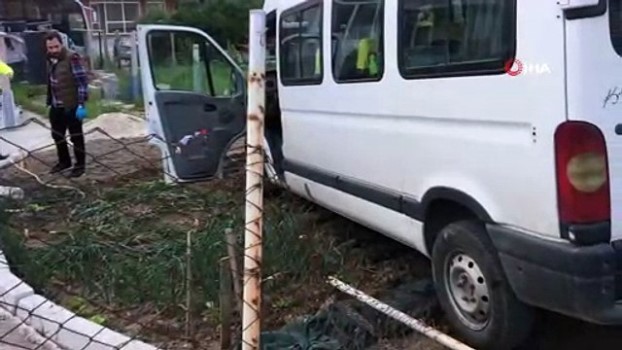 Hızını alamayan servis aracı evin bahçesine uçtu
