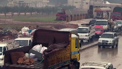 - Sarmada ilçesi ile Suriye - Türkiye sınırı arasındaki yolda oluşan trafik yoğunluğu - Eşyalarını araçlarına yükleyerek ilçeden ayrılan İdlib sakinleri - Rusya ve Esed rejiminin saldırıları neticesinde kasım ayı başından bu yana yerinden edilen sivil sayısı 217 bine çıktıİDLİB (AA) - İdlib 'de Beşşar Esed rejimi ve Rusya'nın saldırıları nedeniyle son 24 saatte 2 bin sivil daha Türkiye sınırı hattı yakınlarına göç etmek zorunda kalırken, kasım ayı başından bu yana yerinden edilen sivil sayısı 217 bine yükseldi.Rejim ve destekçilerinin kasım ayı başından itibaren süren saldırıları ve 20 Aralık'ta başlattıkları operasyon neticesinde İdlib 'in güney kesimlerindeki nüfus, Türkiye sınırı hattına doğru yığılmaya devam ediyor.Saldırılardan kaçan sivilleri taşıyan binlerce aracın Sarmada ilçesi ile Suriye - Türkiye sınırı arasındaki yolda oluşturduğu trafik yoğunluğu, AA kameralarına yansıdı.Sivillerin kamyonetlere evlerinden çıkarabildikleri dolap, battaniye, şilte ve mutfak malzemeleri gibi eşyaları yüklediği görüldü.