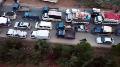 - Drone görüntüsü - Sarmada ilçesi ile Suriye - Türkiye sınırı arasındaki yolda oluşan trafik yoğunluğu - Eşyalarını araçlarına yükleyerek ilçeden ayrılan İdlib sakinleri - Rusya ve Esed rejiminin saldırıları neticesinde kasım ayı başından bu yana yerinden edilen sivil sayısı 217 bine çıktıİDLİB (AA) - İdlib 'de Beşşar Esed rejimi ve Rusya'nın saldırıları nedeniyle son 24 saatte 2 bin sivil daha Türkiye sınırı hattı yakınlarına göç etmek zorunda kalırken, kasım ayı başından bu yana yerinden edilen sivil sayısı 217 bine yükseldi.Rejim ve destekçilerinin kasım ayı başından itibaren süren saldırıları ve 20 Aralık'ta başlattıkları operasyon neticesinde İdlib 'in güney kesimlerindeki nüfus, Türkiye sınırı hattına doğru yığılmaya devam ediyor.Saldırılardan kaçan sivilleri taşıyan binlerce aracın Sarmada ilçesi ile Suriye - Türkiye sınırı arasındaki yolda oluşturduğu trafik yoğunluğu, AA kameralarına yansıdı.Sivillerin kamyonetlere evlerinden çıkarabildikleri dolap, battaniye, şilte ve mutfak malzemeleri gibi eşyaları yüklediği görüldü.