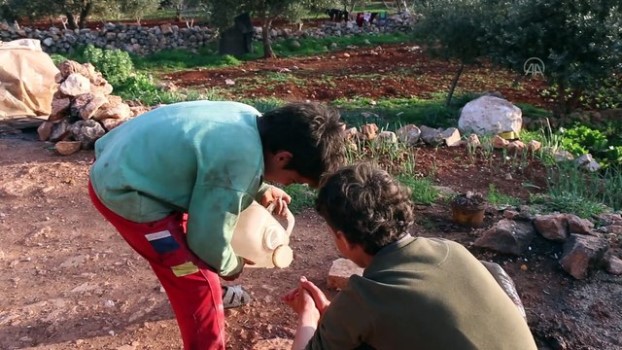 Esed rejiminin Halep'in Ayn Cera köyündeki saldırılarından kaçarak İdlib 'deki Kerim Kampı'nda derme çatma bir çadıra sığınan Hamahir, ailesini geçindirmek için sabahın erken saatlerinde taş kırmaya başladığını anlattı.Hamahir, "İnşaatlarda kullanmak üzere günde 25 adet taşı 1,5 dolar karşılığında kırıyoruz." dedi. Kırdığı taşları araçlara da yüklediğini anlatan Hamahir, kazandığı paranın, ailesiyle kahvaltı yapmaya yetmediğini söyledi.