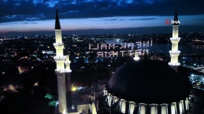 ( İSTANBUL - ÖZEL)- Süleymaniye de iftar yoğunluğu-Süleymaniye Camii’ne asılan mahyaların gün batımıyla birleşen manzarası mest etti-Hayran bırakan manzara havadan görüntülendi İSTANBUL