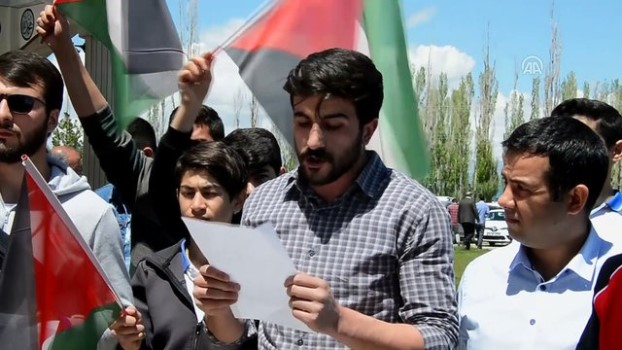 İsrail'in Amerika ve emperyalist güçlerden aldığı destekle ramazan öncesinde büyük bir katliam daha gerçekleştirdiğini aktaran Dırbo, şöyle devam etti:"Bu olaylar sırasında siyonizm tek ve gerçek olan kanlı yüzünü bir kez daha göstermiştir. Tüm dünyanın gözleri önünde yaşanan katliamlara halklar nezdinde tepki gösterilse de devletlerin duyarsız kalması tahammül edilemez noktaya gelmiştir. Mübarek kılınmış bir şehirde ve mabette İsrail'in silahlı unsurlarının kanlı ve kirli postallarla dolaşması en aşağılık davranıştır. Biran evvel İsrailli teröristlerin bölgeden uzaklaştırılması gerekmektedir."Öğrenciler, basın açıklamasının ardından İsrail ve ABD aleyhine sloganlar atıp dağıldı.