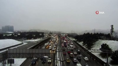 ( İSTANBUL )- Oluşan trafik ve kar yağışı belediyenin trafik kameralarına yansıdı İSTANBUL