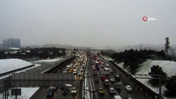 - İstanbul’da sabah saatlerinde etkili olan kar yağışıyla beraber oluşan trafik, belediyenin yol kameralarına yansıdı. Kameralara yansıyan görüntülerde yolların beyaza büründüğü trafiğin ise durma noktasına geldiği görülüyor. Meteoroloji genel müdürlüğünün uyarılarının ardından beklenen kar yağışı sabah erken saatlerinde İstanbul’da etkili oldu. Etkili olan kar yağışıyla beyaza bürünen yollarda trafik durma noktasına geldi. Trafiğin durma noktasına gelmesi ve yollardaki kar yağışı belediyenin trafik kameralarına yansıdı.