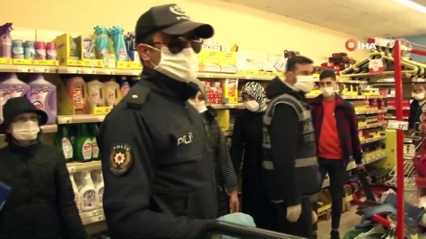 - Hafta sonu uygulanacak olan sokağa çıkma yasağına saatler kala polis ve jandarma ekipleri çeşitli noktalarda uygulama gerçekleştirdi. Vatandaşları ve esnafları sosyal mesafe ile maske konusunda uyaran polis, yasağa uymayanlara biner lira idari para cezası kesti. Trafikteki uygulamalarda ise kapasiteyi aşan minibüs şoförüyle, araçlarında mesafeye uymayanlara toplamda 6 bin lira idari para cezası kesildi. Jandarma ekiplerinin de trafikteki sürücülere yaptığı uygulama havadan görüntülendi. İçişleri Bakanlığı tarafından Korona virüs salgını tedbirleri kapsamında hafta sonu uygulanacak olan sokağa çıkma yasağı öncesi vatandaşlar, market, fırın ve kasaplara akın etti. Beyoğlu Kasımpaşa Kızılay Meydanı’na alışverişe gelen vatandaşlar yasağa saatler kala market, fırın ve kasapların önünde kuyruk oluşturdu. Meydanda tedbirlerini sürdüren Beyoğlu İlçe Emniyet Müdürlüğüne bağlı Kasımpaşa Polis Merkezi Amirliği ekipleri, kuyruktaki vatandaşları sosyal mesafeyi korumaları ve maske takmaları konusunda uyardı. Yasağa uymayanlara “Umumi Hıfzısıhha Kanununa Muhalefet”ten biner lira idari para cezası kesildi. Kasımpaşa polisi ayrıca Bülent Demir, Kasımpaşa Zincirlikuyu Caddesi üzerinde sıkı denetim gerçekleştirdi. Yasağa uymayan sürücülere para cezası Kağıthane’de ise İlçe Emniyet Müdürlüğüne bağlı Trafik Denetleme Büro Amirliği ekipleri, Cendere Caddesi üzerinde toplu taşıma araçlarına yönelik uygulama gerçekleştirdi. Denetimlerde kapasiteyi aşan bir minibüs şoförüne bin lira idari para cezası kesildi. Araçlar üzerinde de uygulama gerçekleştiren polis, sosyal mesafeye uymayan sürücülere de idari para cezası uyguladı. Sürücüleri tek tek uyaran polis maske kullanımına özen göstermelerini istedi. Jandarmanın denetimi havadan görüntülendi Öte yandan uygulamalar kapsamında Eyüp İlçe Jandarma Komutanlığı ekipleri de, Kemerburgaz-Göktürk yolu üzerinde sürücülere yönelik denetim gerçekleştirdi. Sürücülere yasakları hatırlayan ekipler, kurallara uymalarını söyledi.