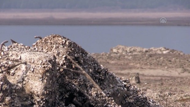 Tahtalı Barajının havadan görüntüleri - Suların azalmasıyla ortaya çıkan köy kalıntılarının havadan görüntüleri - Cami minaresinin havadan görüntüleri - Cami kalıntılarında oluşan midyeler - Kurumuş topraktan görüntüler İzmir 'de baraj suları altında kalan köyün kalıntıları ortaya çıktıİZMİR (AA) - İzmir 'de, doluluk oran düşen Tahtalı Barajı'nda sular altında kalan köyün kalıntıları ortaya çıktı.Yaz ve sonbaharda az yağış alan İzmir 'de, kente içme suyu sağlayan barajların su hacmi önemli seviyede azalmasıyla Tahtalı Barajı'nda da su seviyesi düştü.Geçen yılın aralık ayında yüzde 65 civarında doluluk oranına sahip barajda bu rakam yüzde 35 olarak kayıtlara geçti.Barajdaki su oranın düşmesiyle sular altında kalan Eski Buruncuk köyünün de kalıntıları gün yüzüne çıktı.Su altında kalan cami ve minaresi yeniden ortaya çıktı. Cami yakınındaki yıkık binalar içinde midyeler de dikkati çekti.Bu arada Tahtalı Barajı'nda 2 Aralık itibariyle kullanılabilir su miktarının 101 milyon 663 bin metreküp olduğu öğrenildi. LyonDoluluk Oranıİçme SuyuSonbahar