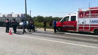 - İzmir’in Torbalı ilçesinde otomobil ile mermer yüklü TIR’ın çarpışması sonucu bir vatandaş hayatını kaybetti. Kaza bugün saat 12.00 sularında Torbalı-Kemalpaşa yolu üzeri Ortaköy Mahallesi mevkiinde meydana geldi. İddiaya göre Kemalpaşa istikametinden Torbalı yönüne doğru seyir halinde olan Ali Demir (35) idaresindeki 35 ZAS 08 plakalı otomobil, yolun sağ şeridinde park halinde duran 35 TOB 32 plakalı mermer yüklü TIR’a arkadan çarptı. Kazayı gören diğer sürücüler durumu hemen jandarmaya bildirirken, olay yerine sağlık ekipleri ile AKS 110 ekipleri de sevk edildi. AKS 110 ekipleri, aracı TIR'ın dorsesinin altından çıkarırken, sağlık görevlilerinin yaptığı müdahalede Demir’in hayatını kaybettiği belirlendi. Savcının incelemesinin ardından otomobil sürücüsünün cenazesi İzmir Adli Tıp Kurumu Morguna kaldırıldı. (TT-