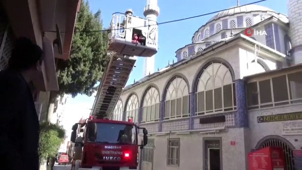 -İtfaiye ekiplerinin cami minaresine çıkıp parçaları alması