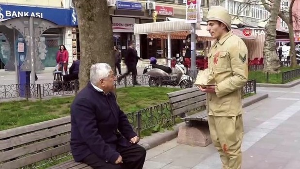 - Kağıthane Belediyesi, Çanakkale Zaferi’nin 105. yılı anısına anlamlı bir video paylaştı. Kağıthane Belediyesi, sosyal medya hesaplarından paylaştığı bir video ile Çanakkale Zaferi’ni adeta günümüze taşıdı. Videoda temsili olarak Mehmet adında 18 yaşında Çanakkale’de şehit olmuş bir asker, Kağıthane sokaklarında vatandaşlara üzüm hoşafı ve ekmek ikram ediyor. ‘İsimlerimizi unutsanız bile bu vatan için toprağa düşen bizleri unutmayın’ diyen askere karşı vatandaşların duygulandığı, kimisinin hayır duada bulunduğu gözleniyor. Belediye tarafından yapılan açıklamada ise, “Bugün Türkiye’nin unutulmaz tarihi 18 Mart Çanakkale Zaferi’nin yıl dönümü. Tarihin şahit olduğu en büyük savaşlardan birinin yaşandığı Çanakkale’de 105 yıl önce Türk milleti; dünyanın en güçlü ordularını dize getirerek adeta destan yazdı. Türkiye bugün Çanakkale’de şehit olan vatan evlatlarını anıyor” ifadelerini kullandı. Video sosyal medya platformlarından paylaşılmasının ardından binlerce beğeni ve yorum aldı.