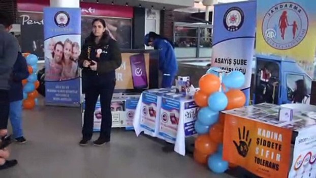 Bir alışveriş merkezinde düzenlenen etkinlikte vatandaşlara karanfil ve broşür dağıtıldı, Kadın Destek Uygulaması (KADES) hakkında bilgi verildi.
