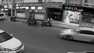 - Mersin'de sürücüsünün kontrolünden çıkan otomobil önce park halindeki motosikletlere, ardından kaldırıma çıkıp bir iş yerinin vitrinine çarparak durabildi. Güvenlik kameralarınca saniye saniye kaydedilen kazada, araç sürücüsüyle birlikte 3 kişi hafif yaralandı. Edinilen bilgiye göre, merkez Akdeniz ilçesi Silifke Caddesi'nde seyir halindeki otomobil, sürücüsünün kontrolünden çıkarak önce yol kenarında park halindeki motosikletlere çarptı, ardından onlarca yayanın geçtiği kaldırıma çıkıp bir iş yerinin vitrinine çarparak durabildi. Kazada, araç sürücüsü ile birlikte iş yerinde bulunan 2 kişi hafif şekilde yaralandı. Yaralılar olay yerine sevk edilen ambulanslarla hastaneye kaldırıldı. Kaldırımda yürüyenler ezilmekten saniyelerle kurtuldu Öte yandan kaza anı bölgedeki kameralar tarafından kaydedilirken, kaza sırasında kaldırımda yürüyen çok sayıda kişinin saniyelerle ezilmekten kurtulduğu ortaya çıktı. Güvenlik kamerası görüntülerine göre, kazadan saniyeler önce 3 çocuklu bir aile iş yerinin önünden geçerken, bir şahsın iş yerinden çıktığı, bir başka kadının ise kaldırımda yürürken aracın geldiğini görerek geri adım attığı görüldü.