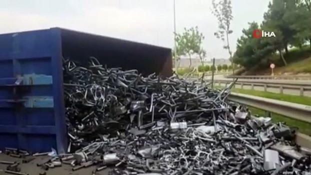 Kamyon devrildi, egzoz boruları yola saçıldı